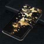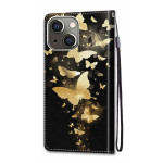 Protégez votre iPhone 13 Mini avec élégance grâce à cet étui portefeuille au motif de papillons dorés. Doté d'un support pliable pratique, de fentes pour cartes et d'une dragonne, il allie style et fonctionnalité pour simplifier votre quotidien.