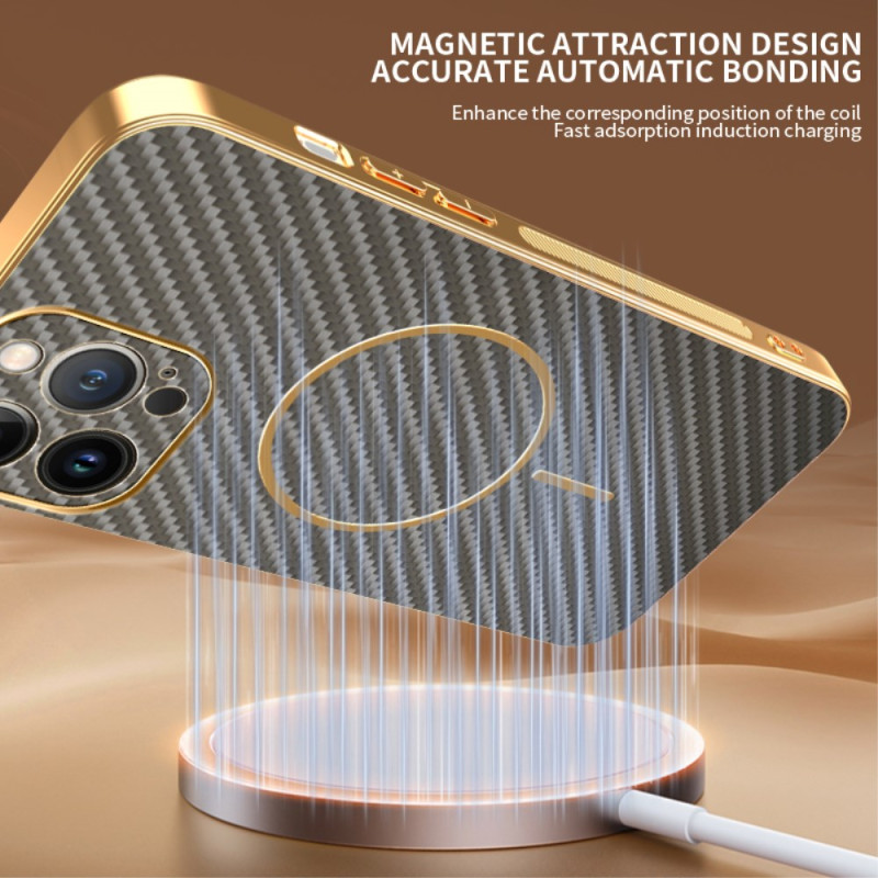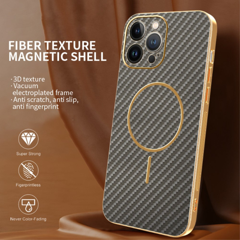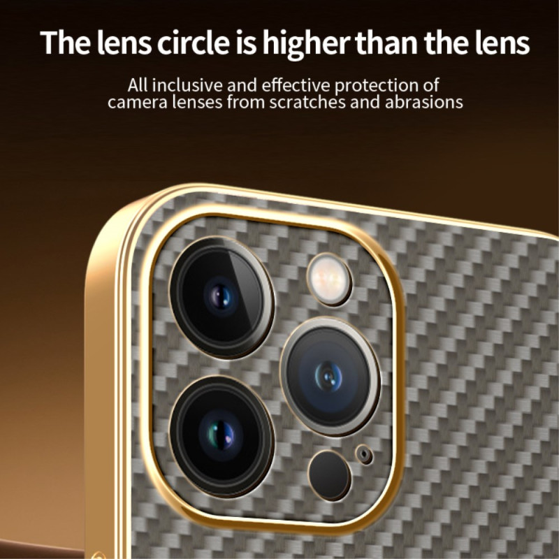 Protégez votre iPhone 13 Pro Max avec style grâce à cette coque en TPU flexible et résistante. Sa finition galvanisée premium et sa texture fibre de carbone offrent une protection optimale contre les chocs tout en résistant aux empreintes digitales.