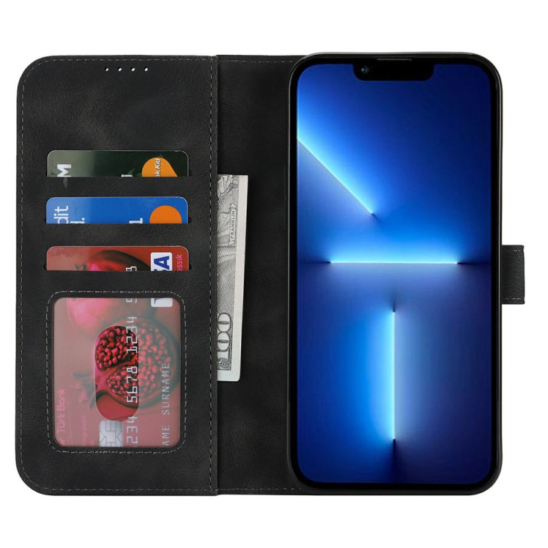 Étui portefeuille multifonction en cuir PU premium pour iPhone 13 Pro Max / 12 Pro Max. Rangez vos cartes, argent liquide et protégez votre téléphone avec style. Fermeture magnétique sécurisée et fonction support intégrée pour un confort optimal.
