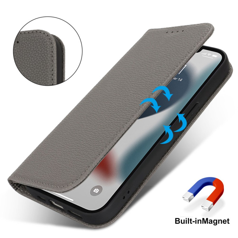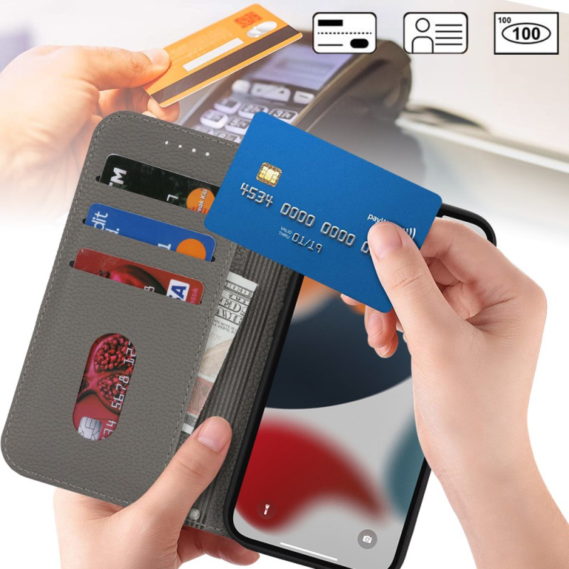 Découvrez notre étui à rabat élégant en cuir texturé pour iPhone 13 Pro Max et 12 Pro Max. Doté d'un support intégré, de 3 emplacements pour cartes et d'une fermeture magnétique sécurisée, cet étui allie style et fonctionnalité.
