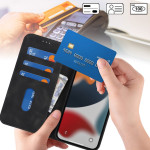 Étui élégant et multifonctionnel pour iPhone 13 Pro Max / 12 Pro Max. Doté d'un portefeuille intégré avec 3 emplacements pour cartes, une fermeture magnétique sécurisée, et une fonction support pratique pour vos vidéos et appels.