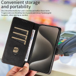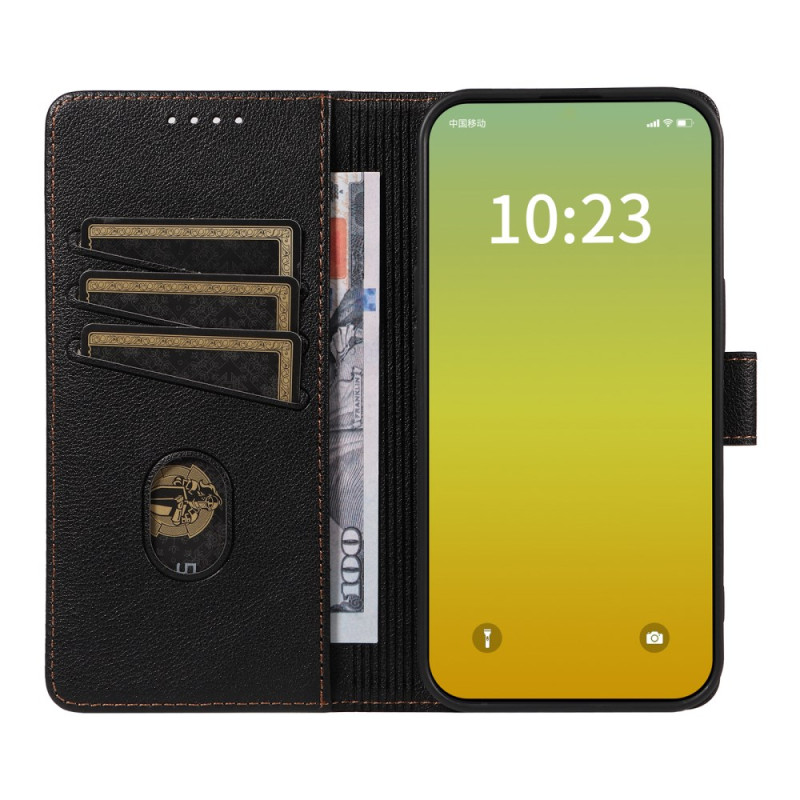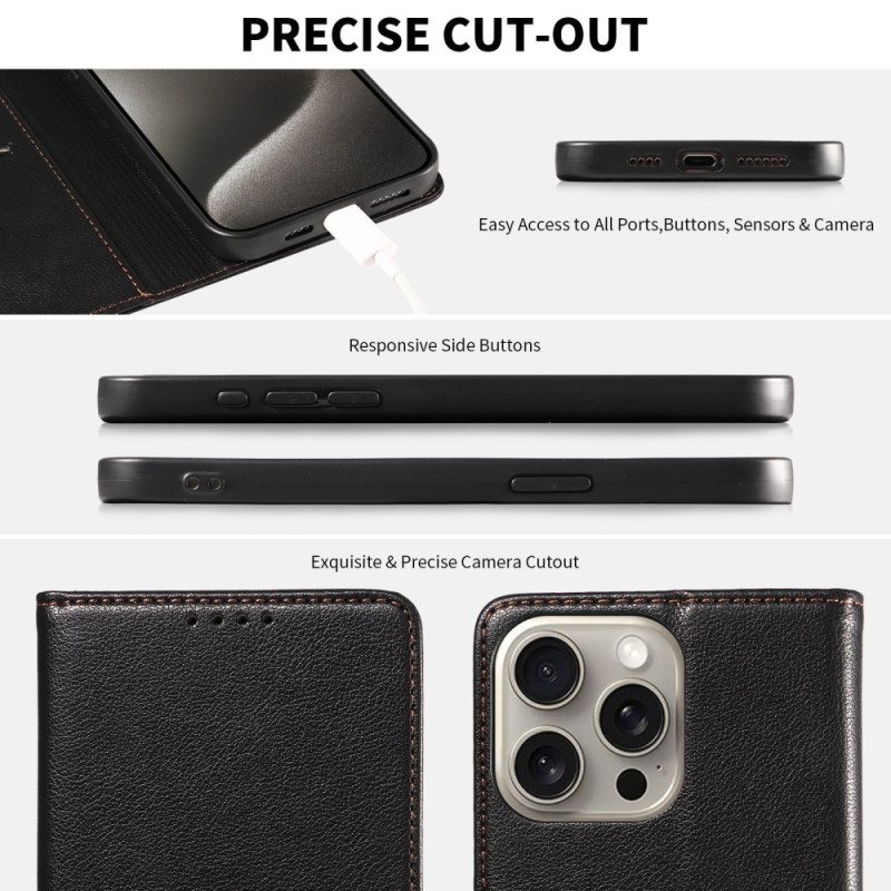 Protégez votre iPhone 13 Pro Max avec style grâce à cet étui portefeuille en cuir PU texture litchi. Équipé de 3 emplacements pour cartes avec blocage RFID, d'une poche pour espèces et d'une fonction support mains libres. Fermeture magnétique sécurisée et protection intégrale contre les chocs et rayures.