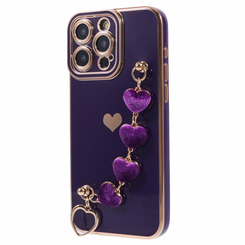 Protégez votre iPhone 13 Pro Max avec élégance grâce à cette coque souple en TPU dotée d'une finition électrolytique brillante. Son design raffiné inclut une dragonne en forme de cœur et des bords surélevés pour protéger l'appareil photo.