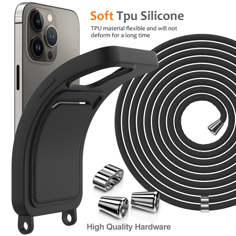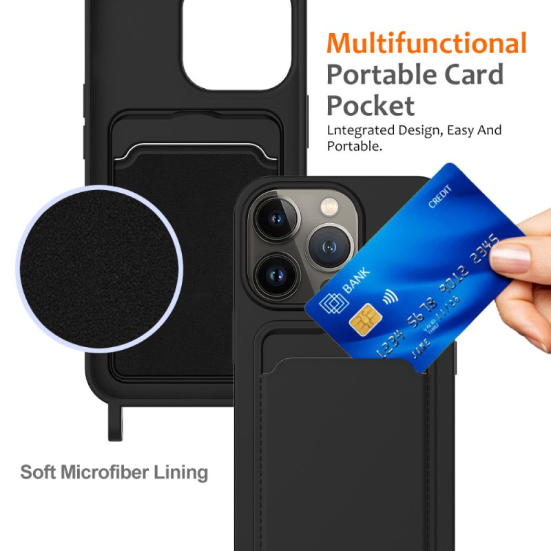 Protégez votre iPhone 13 Pro Max avec élégance grâce à cette coque en silicone liquide ultra-douce. Dotée d'un porte-carte intégré et d'une bandoulière ajustable de 160cm, elle allie praticité et protection optimale pour votre quotidien.
