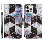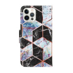 Protégez votre iPhone 13 Pro Max avec élégance grâce à cet étui portefeuille multifonction au design géométrique noir sophistiqué. Doté de fentes pour cartes intégrées et d'une dragonne pratique, il se transforme en support pour une utilisation mains libres optimale.
