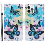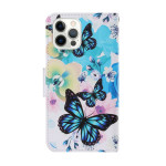 Housse iPhone 13 Pro Max Papillons Bleus Aquarelle