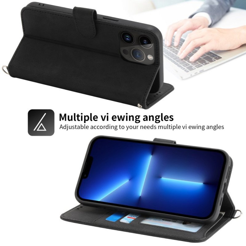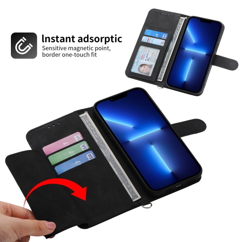 Découvrez cet élégant étui portefeuille pour iPhone 13 Pro Max 6.7 pouces. Design raffiné avec motif floral imprimé, fonction support intégrée et rangements pratiques pour cartes et billets. Inclut une sangle d'épaule et une dragonne.