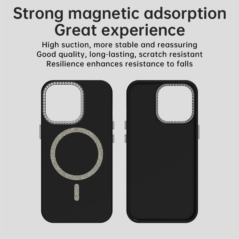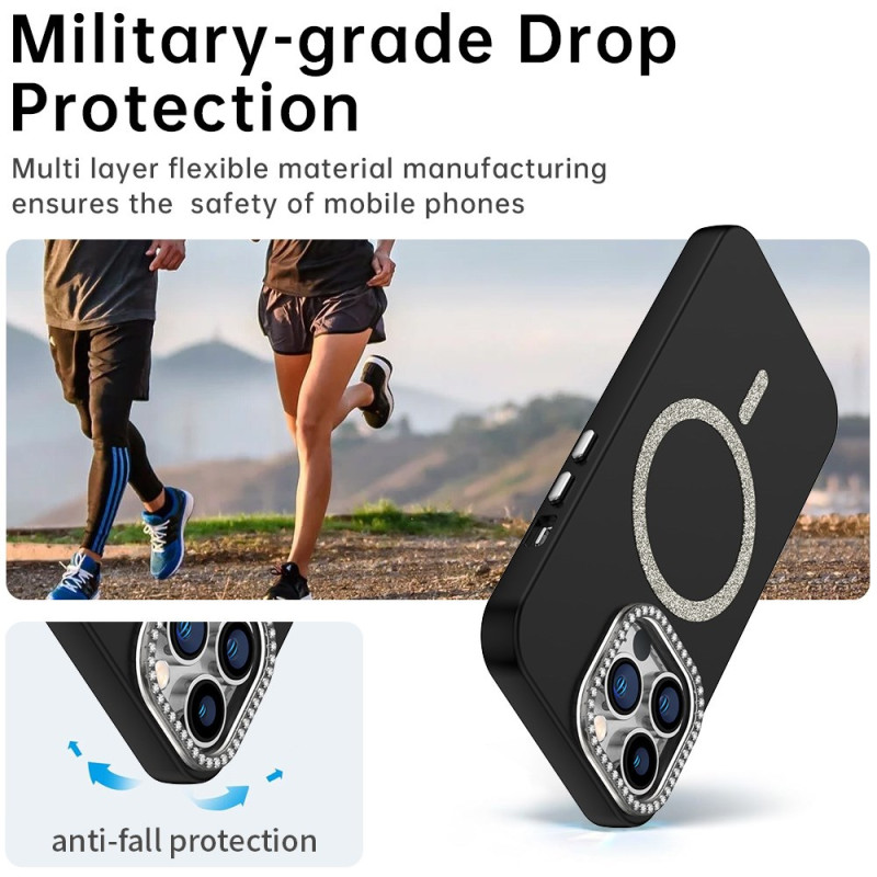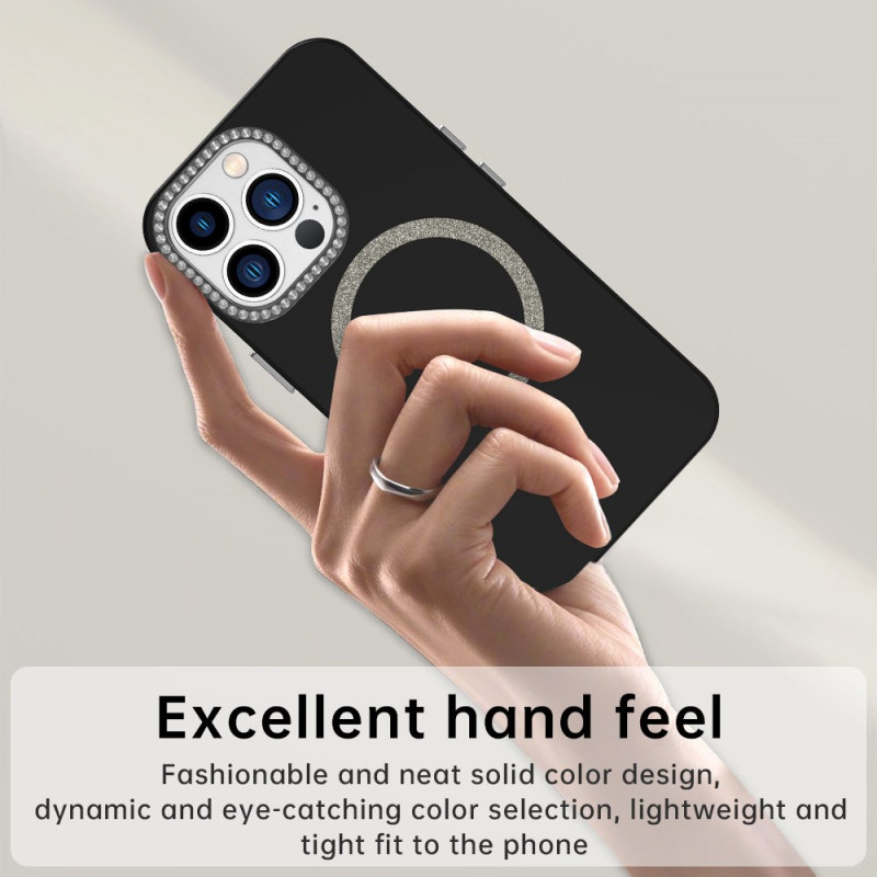Protégez votre iPhone 13 Pro avec élégance grâce à cette coque compatible MagSafe. Son cadre d'objectif orné de strass étincelants et sa finition pailletée apportent une touche luxueuse à votre téléphone tout en assurant une protection optimale.