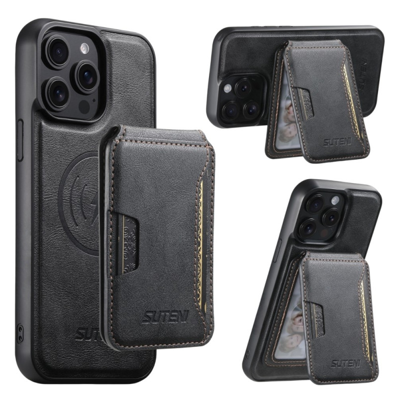 Coque magnétique 2-en-1 détachable pour iPhone 13 Pro avec texture cuir. Compatible MagSafe, porte-cartes 3 emplacements intégré servant de support. Protection complète contre les chocs et rayures avec fixation magnétique pour support voiture.