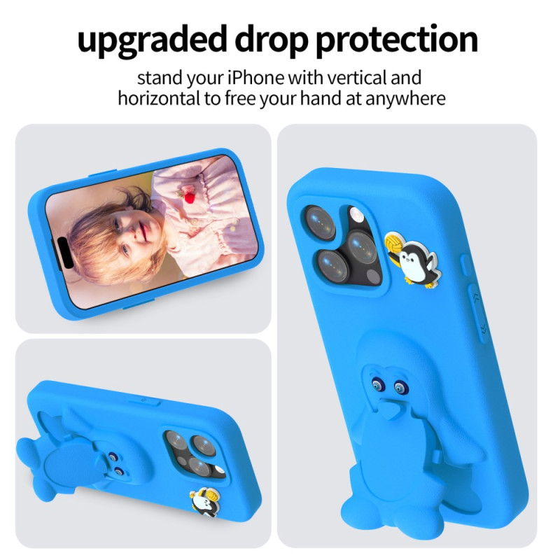 Protégez votre iPhone 13 Pro avec style grâce à cette coque adorable au design pingouin en relief 3D. Fabriquée en EVA écologique et antichoc, elle offre une protection optimale avec support intégré ajustable pour vos vidéos et navigation.