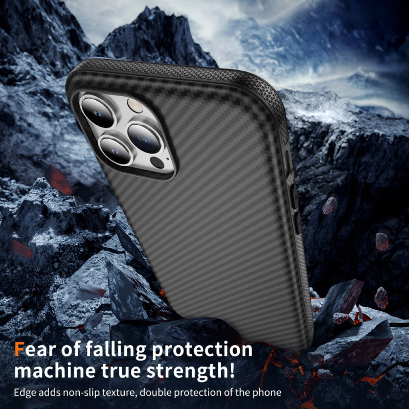 Protégez votre iPhone 13 Pro avec élégance grâce à cette coque premium à texture fibre de carbone. Compatible MagSafe, elle offre une prise en main confortable et sécurisée tout en assurant une protection optimale contre les chocs et les rayures.