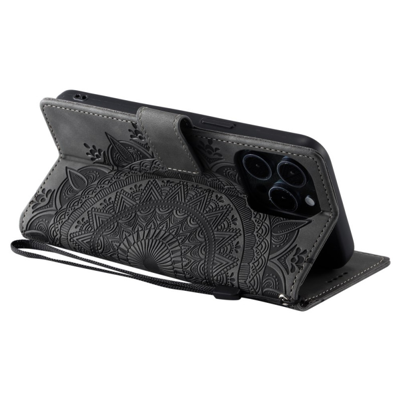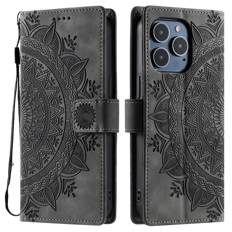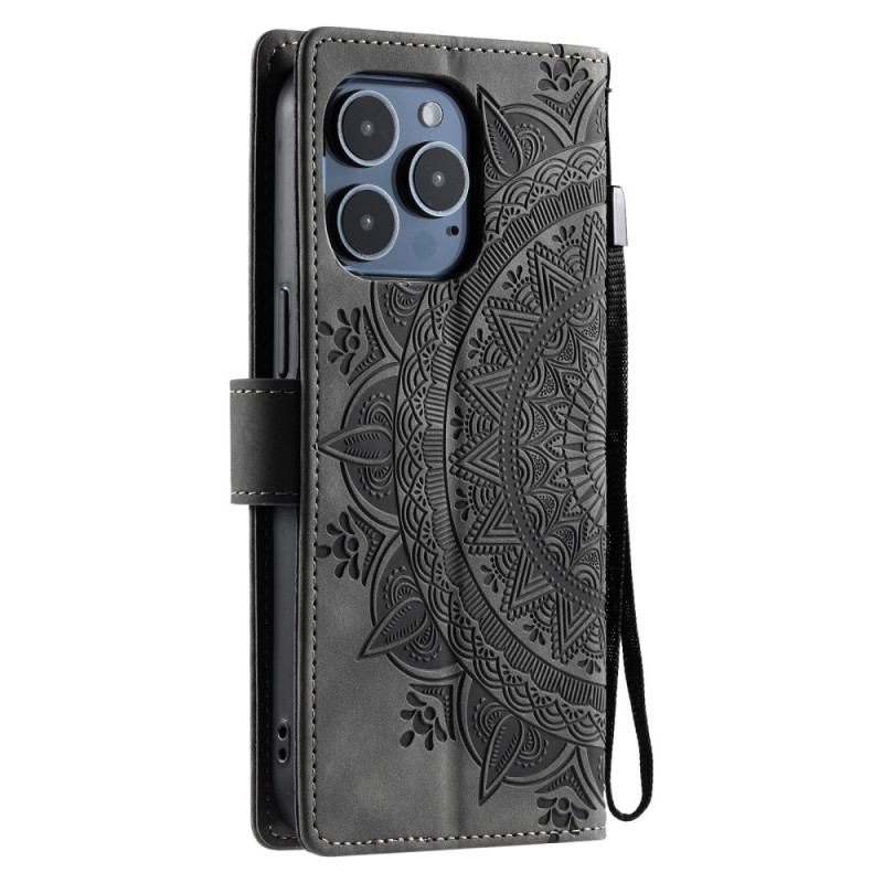 Protégez votre iPhone 13 Pro avec style grâce à cet étui portefeuille en cuir PU premium. Doté d'un motif mandala élégant, de 3 emplacements pour cartes, d'une fermeture magnétique et d'un support intégré pour un usage mains libres.