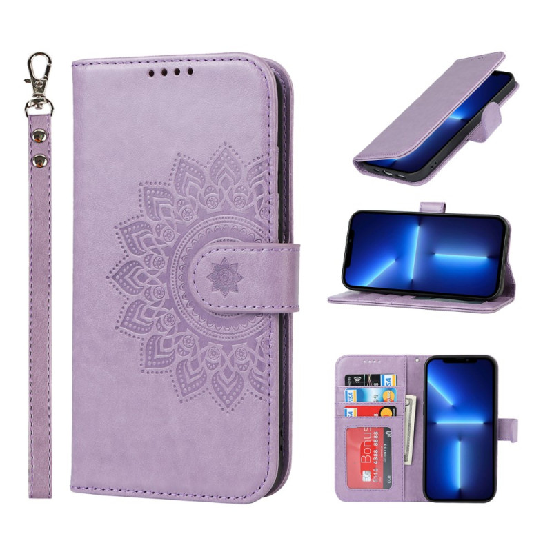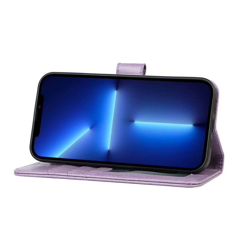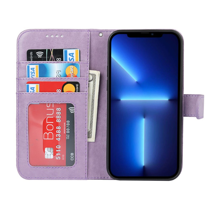 Découvrez cet élégant étui portefeuille en cuir PU texturé pour iPhone 13 Pro. Design sophistiqué avec motifs gaufrés, protection intégrale anti-chute et intérieur en TPU souple. Profitez de multiples rangements pour cartes et billets, d'un support mains libres et d'une dragonne pratique pour un transport facile au quotidien.