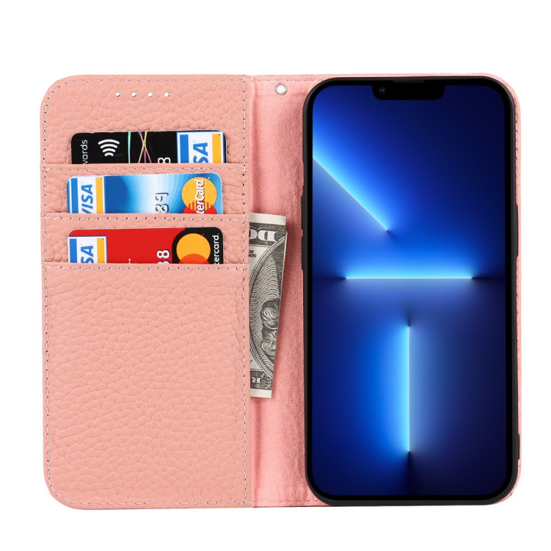 Découvrez l'alliance parfaite entre élégance et praticité avec cet étui portefeuille en cuir véritable texture litchi. Conçu spécialement pour l'iPhone 13 Pro, il combine protection premium, rangement pour cartes et fonction support pour une expérience optimale au quotidien.