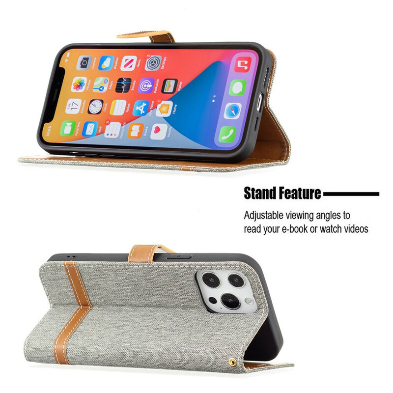Cette housse est conçue en partie de tissu et de simili cuir pour la sécurité de votre iPhone 13 Pro.