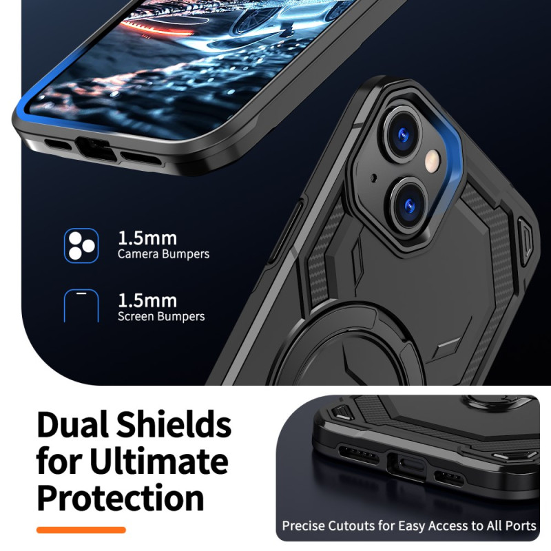 Découvrez notre coque hybride PC + TPU pour iPhone 13. Dotée d'un anneau magnétique faisant office de support, elle offre une protection robuste contre les chocs et les chutes. Son design ergonomique assure une prise en main confortable, tandis que ses découpes précises permettent un accès facile à tous les boutons et ports.