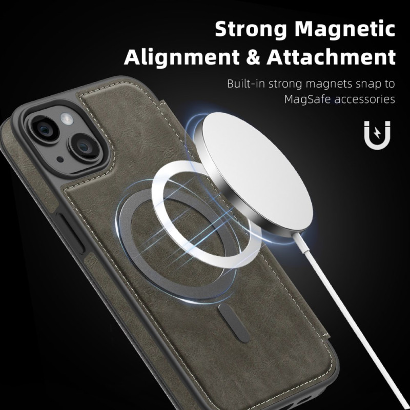 Cette housse de téléphone compatible MagSafe offre une protection durable et élégante pour votre iPhone 14 Plus. Fabriquée en TPU et cuir PU de haute qualité, elle combine style et fonctionnalité avec des emplacements pour cartes intégrés et une technologie de blocage RFID pour sécuriser vos informations personnelles.