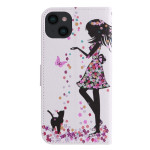 Découvrez notre étui portefeuille chic et fonctionnel pour iPhone 14 Plus. Alliant style et protection, il arbore un magnifique motif femme et chat. Avec son rabat magnétique, ses emplacements pour cartes et sa fonction support, cet étui allie praticité et élégance pour une utilisation quotidienne optimale.
