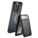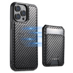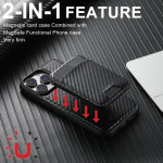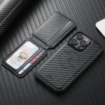Étui magnétique 2-en-1 en cuir PU texture fibre de carbone et TPU pour iPhone 14 Pro Max. Porte-cartes détachable avec 3-4 emplacements, fonction support et compatible MagSafe. Protection élégante et pratique pour votre quotidien.