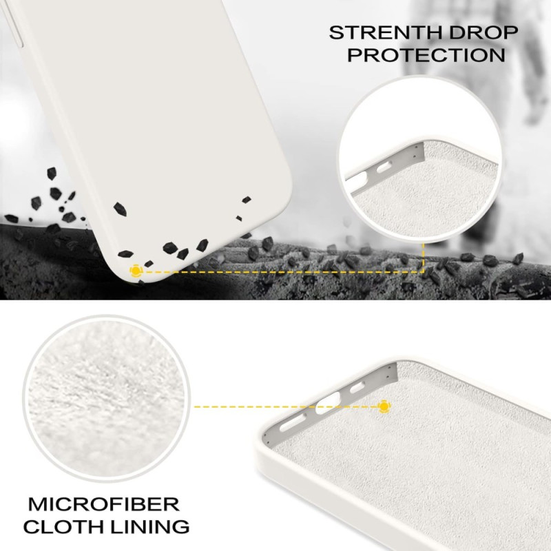 Coque de protection premium pour iPhone 14 Pro Max avec technologie antichoc et intérieur en microfibre douce. Structure à quatre couches alliant silicone liquide et PC rigide pour une protection optimale contre les chutes et les rayures.