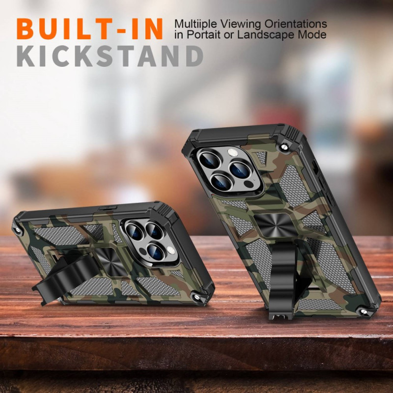 Découvrez cette coque Camouflage, qui vient avec un support amovible, pour sécuriser votre iPhone 14 Pro Max.