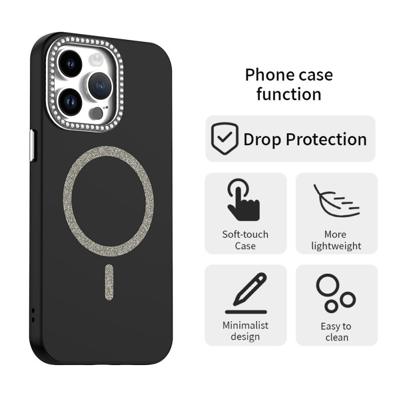 Découvrez notre élégante coque pour iPhone 14 Pro, compatible MagSafe. Alliant style et protection, elle présente un cadre d'objectif orné de strass scintillants et un design pailleté. Fabriquée en TPU et PET de haute qualité, cette coque fine et légère offre une protection durable contre les rayures et les chocs.