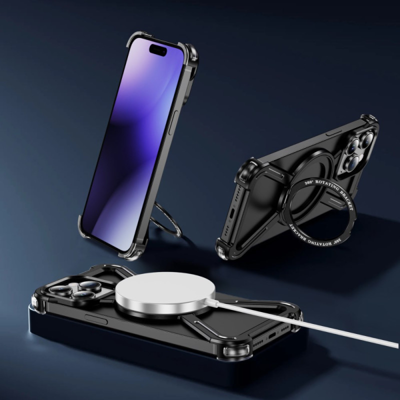 Découvrez notre coque bumper innovante pour iPhone 14 Pro. Dotée d'un support rotatif à 360°, elle est compatible MagSafe et offre une excellente dissipation thermique. Son design minimaliste en métal avec cadre sans bordure assure une protection optimale tout en préservant l'esthétique de votre appareil.