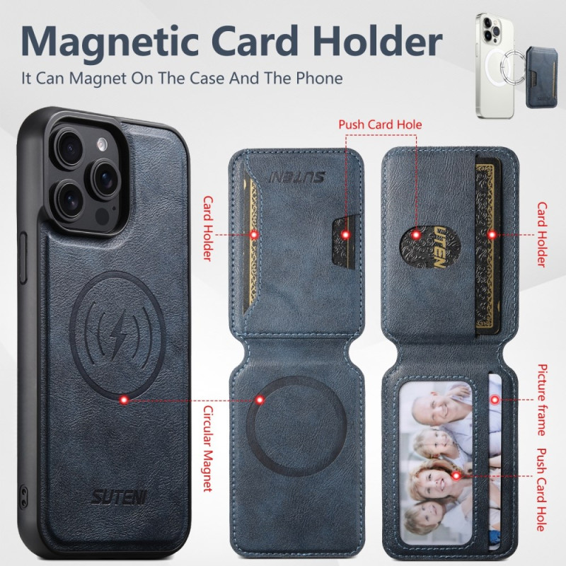 Découvrez la coque SUTENI pour iPhone 14 Pro, alliant élégance et fonctionnalité. Ce boîtier 2-en-1 détachable offre une protection robuste avec son cuir texturé et son TPU durable. Compatible MagSafe, il intègre un porte-cartes magnétique à 3 fentes et une béquille pratique. Profitez d'une protection complète et d'un style sophistiqué pour votre iPhone.