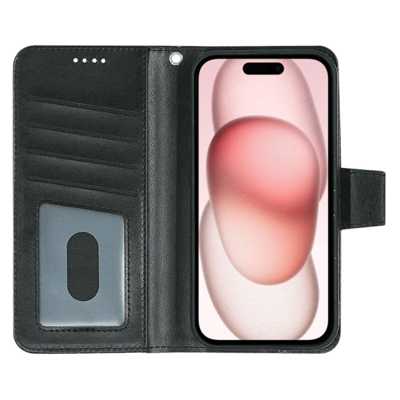 • Design portefeuille avec emplacements pour cartes et un compartiment pour billets