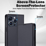 Découvrez notre housse portefeuille premium pour iPhone 14 Pro. Alliant protection militaire et fonctionnalité, elle offre une protection renforcée pour l'appareil photo, des emplacements pour cartes et billets, et se transforme en support pratique. Fabriquée en cuir PU de haute qualité, elle assure style et durabilité.