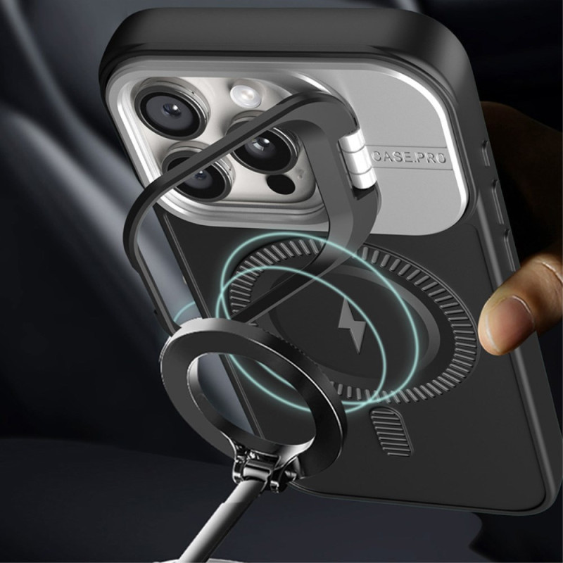 Découvrez notre coque iPhone 14 Pro innovante avec support intégré et protection d'objectif. Dotée d'un noyau magnétique puissant et compatible MagSafe, elle offre une protection maximale contre les rayures et les chutes. Son design pratique inclut des bords surélevés et des découpes précises pour une utilisation facile.