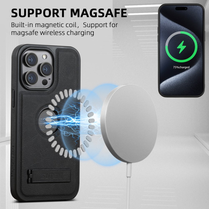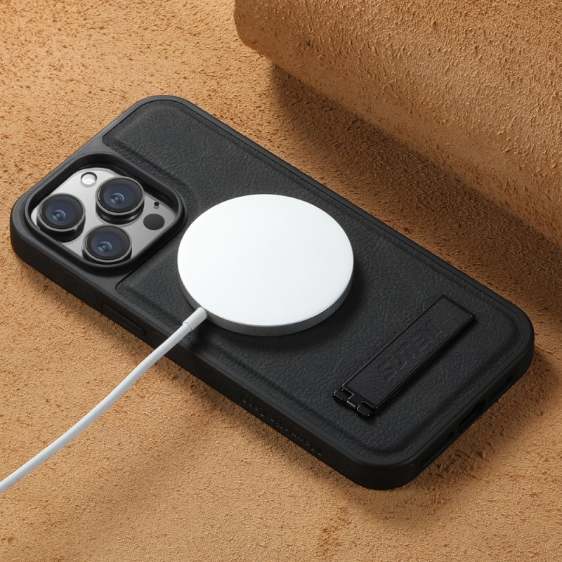 Découvrez la coque SUTENI pour iPhone 14 Pro, alliant style et fonctionnalité. Cette coque magnétique offre une protection complète avec sa texture cuir et son support intégré. Compatible avec la recharge sans fil MagSafe, elle assure une excellente résistance à l'usure tout en permettant un accès facile à toutes les fonctionnalités de votre téléphone.