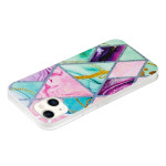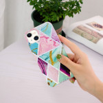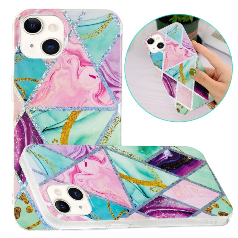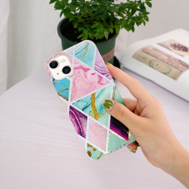 Choisissez cette coque marbre géométrique flashy pour protéger élégamment votre iPhone 15 Plus.