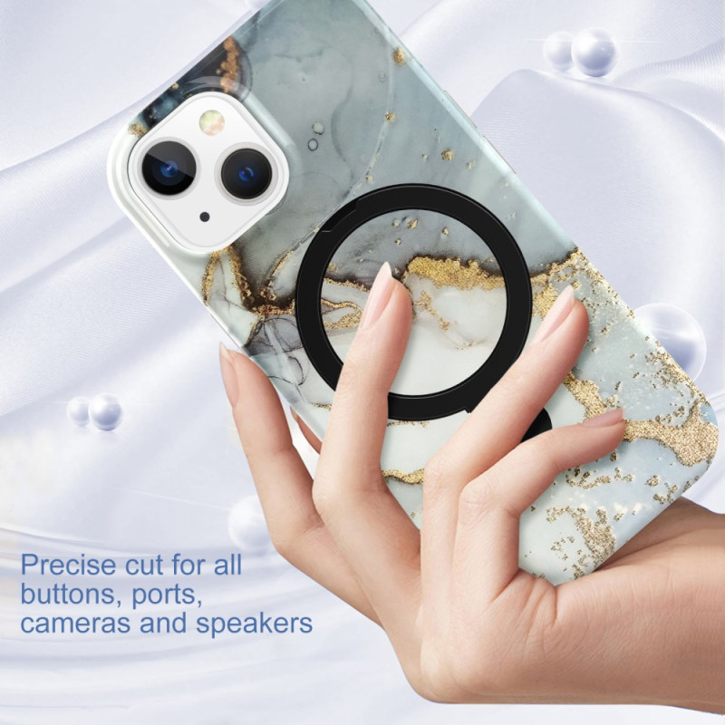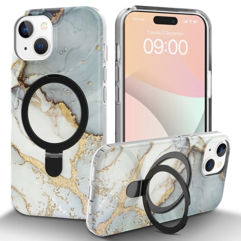 Coque iPhone 15 Plus MagSafe avec Support Design Marbre