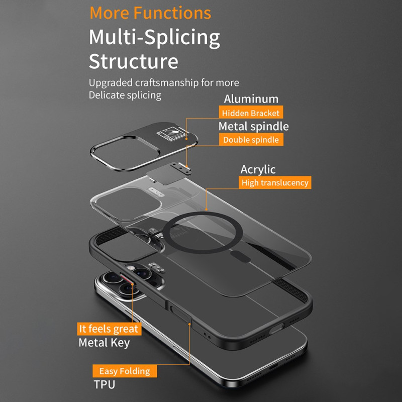 Découvrez notre coque de protection innovante pour iPhone 15 Pro Max. Alliant durabilité et fonctionnalité, elle offre une protection robuste grâce à son TPU flexible et son panneau arrière en acrylique transparent. La béquille intégrée et la compatibilité MagSafe en font un accessoire polyvalent et pratique pour votre quotidien.