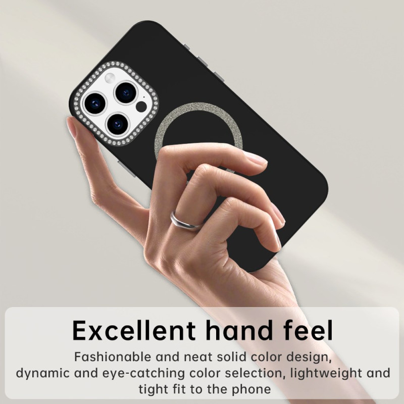 • Le cadre de l'objectif, orné de strass étincelants, ajoute une touche de luxe tout en protégeant la caméra.