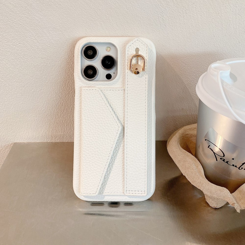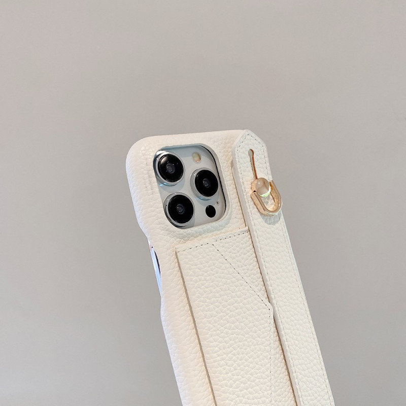 Coque de téléphone en cuir PU de haute qualité avec fente pour cartes, dragonne et support intégré. Offre une protection durable et un confort optimal. Comprend un emplacement sécurisé pour 5 cartes, une dragonne polyvalente servant de poignée et de support, et un crochet en U ajustable à 360°. Protection renforcée de l'appareil photo.