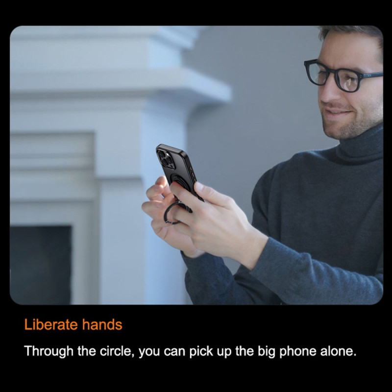 • Béquille rotative à 360° : Équipée d'une béquille métallique rotative à 360° avec anneau en silicone, cette coque permet une visualisation mains libres sous plusieurs angles, parfaite pour regarder des vidéos ou passer des appels vidéo.