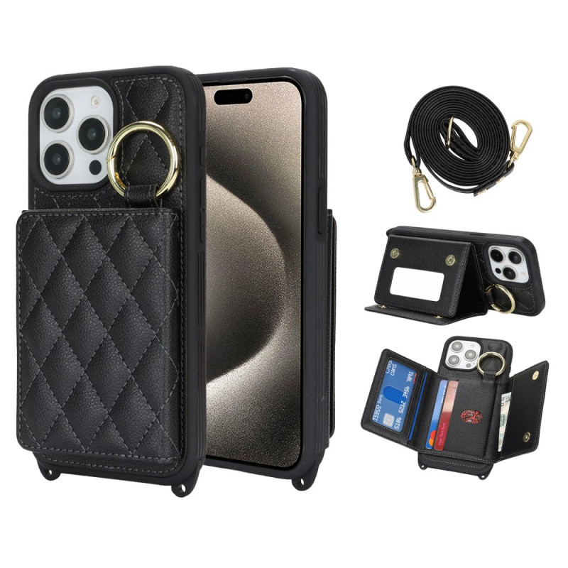 Coque iPhone 15 Pro Portefeuille RFID avec Bandoulière
