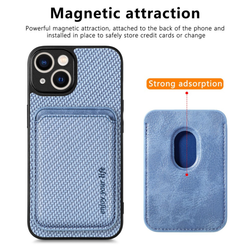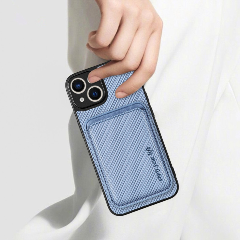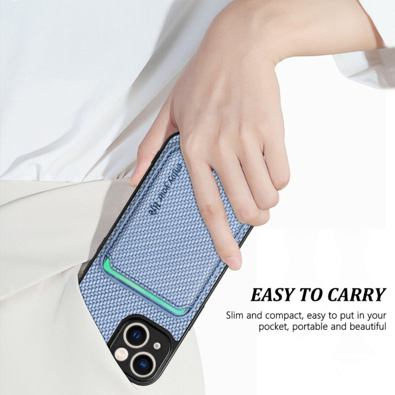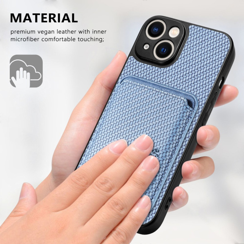 Votre iPhone 15 est merveilleusement protégé avec cette coque en fibre carbone munie d'un porte-cartes détachable.