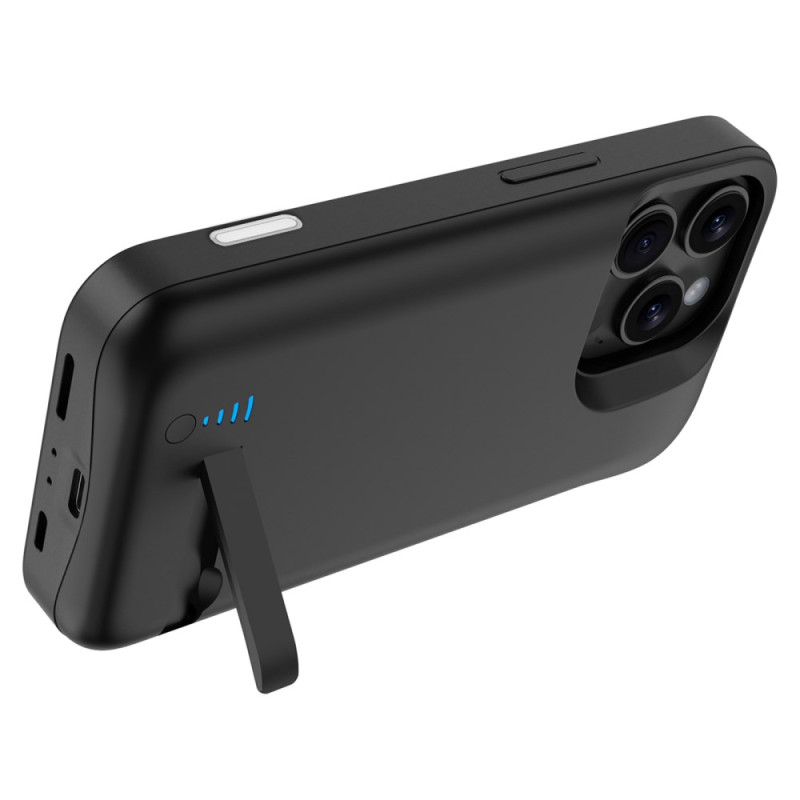 Cette coque batterie de 6000mAh offre une autonomie prolongée à l’iPhone 16 Pro Max tout en intégrant un support pratique pour une utilisation mains libres. Son ajustement précis permet de conserver l’accès à toutes les fonctionnalités du téléphone sans retirer la coque. Les voyants LED indiquent clairement le niveau d’énergie, et un bouton intelligent optimise l’usage de la batterie intégrée. Conçue en matériaux robustes, elle combine protection et recharge dans un seul accessoire. Son circuit intégré réduit les risques de surcharge, de court-circuit ou de surchauffe pour une utilisation sûre au quotidien.