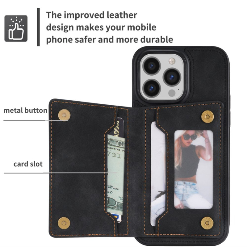Elle offre une protection complète et dispose de fentes pour cartes et d'une poche zippée à l'arrière pour ranger vos essentiels en toute commodité.