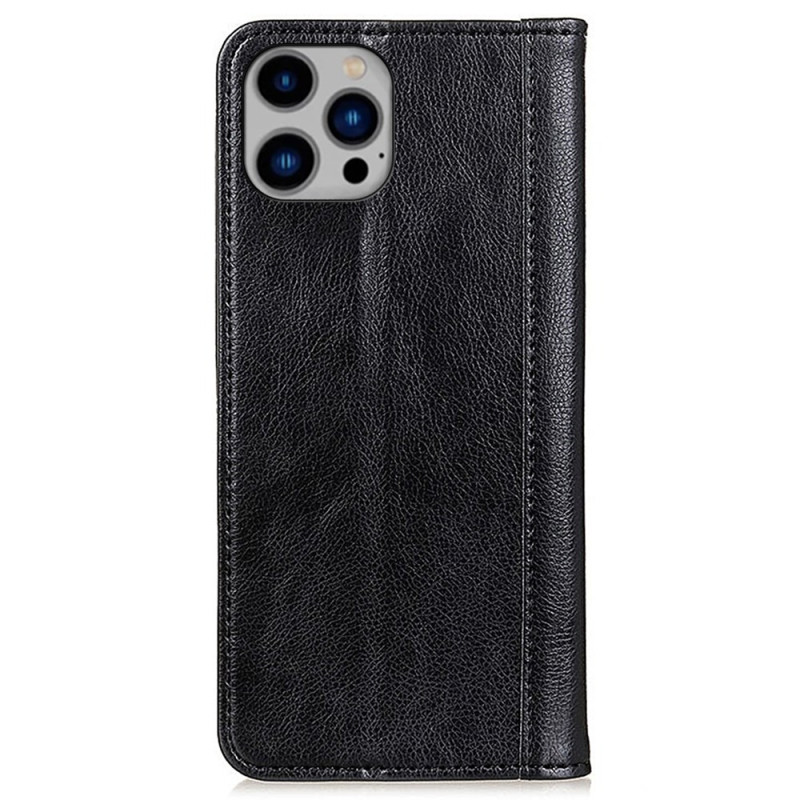Flip Cover iPhone 16 Pro Cuir Fendu Design Vintage