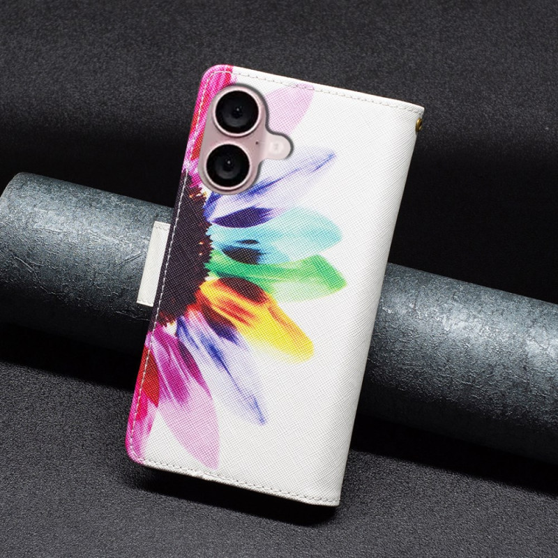 Housse iPhone 16 Portefeuille Fleur Aquarelle