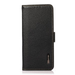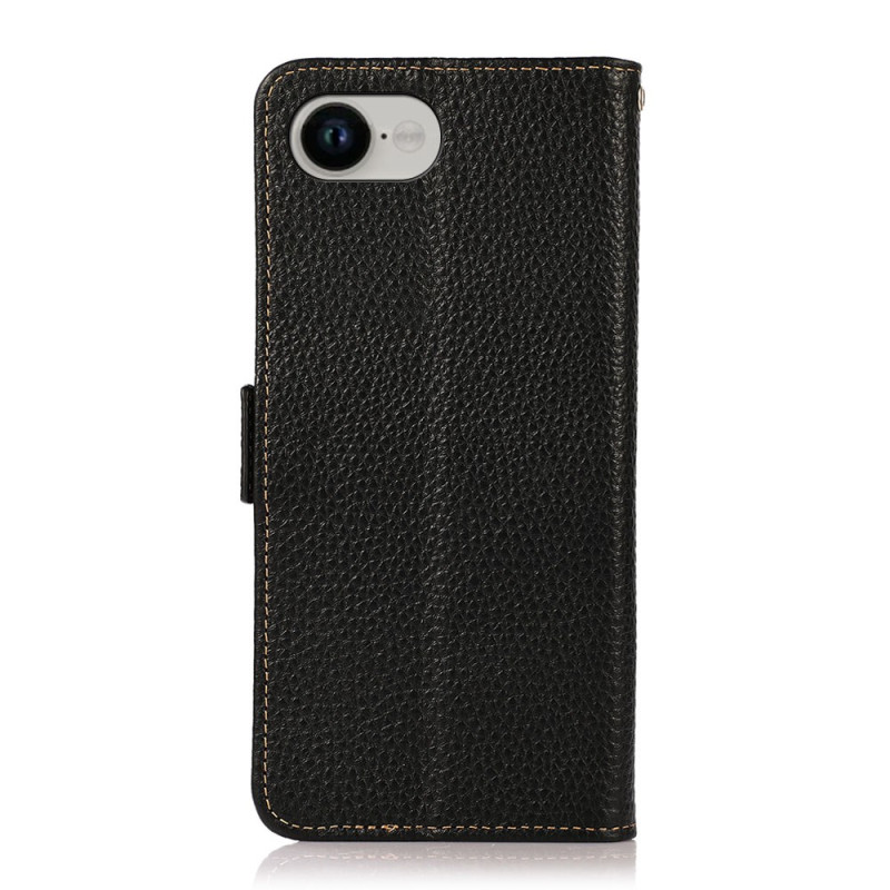 Découvrez notre élégante housse en cuir véritable pour iPhone 17E / 16E. Dotée d'une texture litchi raffinée, elle offre une protection RFID, des emplacements pour cartes et une fonction support.
