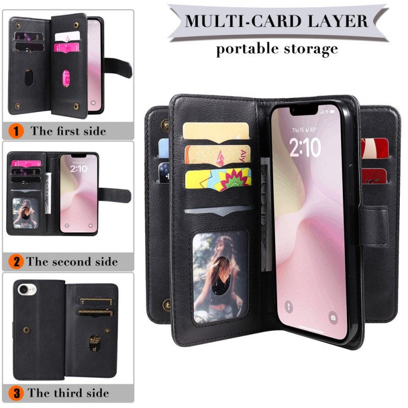 Découvrez notre housse innovante pour Phone 17E / 16E, alliant protection et praticité. Fabriquée en cuir PU de haute qualité et TPU, elle offre 10 emplacements pour cartes, un compartiment pour billets et une fermeture magnétique.