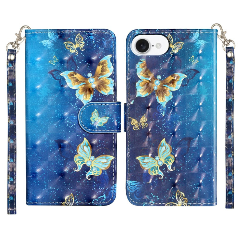 Découvrez notre élégante coque pour iPhone 17E / 16E, ornée d'un magnifique motif de papillons bleu et or en impression 3D. Alliant style et fonctionnalité, cette coque en cuir PU et TPU offre une protection complète contre les rayures et les chocs.