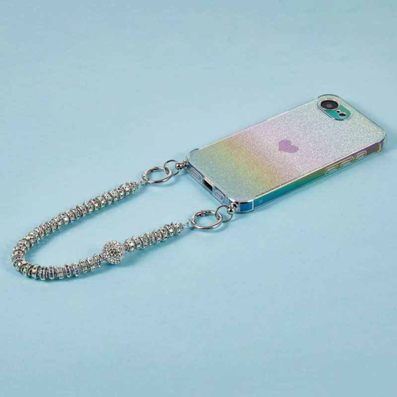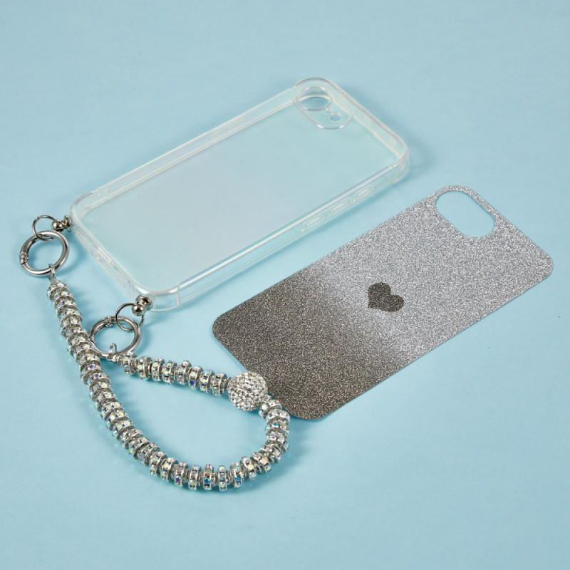 Découvrez notre élégante coque pour iPhone 17E / 16E. Alliant style et protection, elle présente un design transparent avec des paillettes dégradées et une sangle ornée de strass.