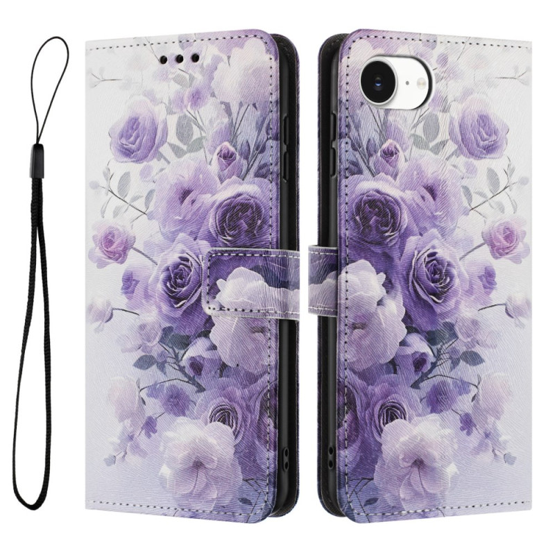 Protégez votre iPhone 17E / 16E avec élégance grâce à cet étui portefeuille raffiné orné d'un motif rose violette. Doté de fentes pour cartes, d'un support pliable et d'une dragonne pratique, il combine style et fonctionnalité pour faciliter votre quotidien.
