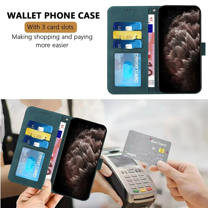 Étui portefeuille élégant pour iPhone 17E / 16E en cuir PU premium avec texture enveloppe. Doté de 3 emplacements pour cartes, d'une poche pour espèces et d'un support mains libres intégré. La fermeture magnétique sécurisée et la protection...